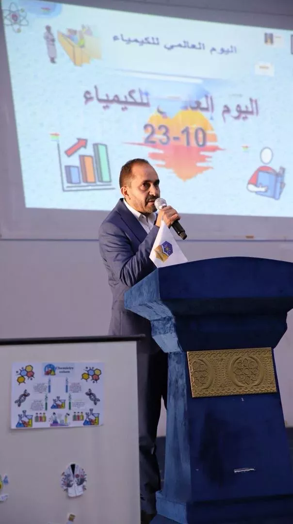بأجواء يسودها الحماس وروح المعرفة، نظّم قسم الكيمياء بكلية العلوم - غريان يوم الأحد الموافق 2 نوفمبر 2025 فعالية الاحتفال باليوم العالمي للكيمياء، في إطار تعزيز الوعي بدور العلوم الكيميائية في خدمة التنمية المستدامة ودعم مسيرة البحث العلمي. وقد تميّزت الفعالية بمشاركة واسعة من أعضاء هيئة التدريس والطلاب، وبحضور نخبة من القيادات الأكاديمية بالجامعة.