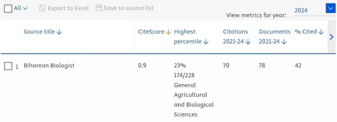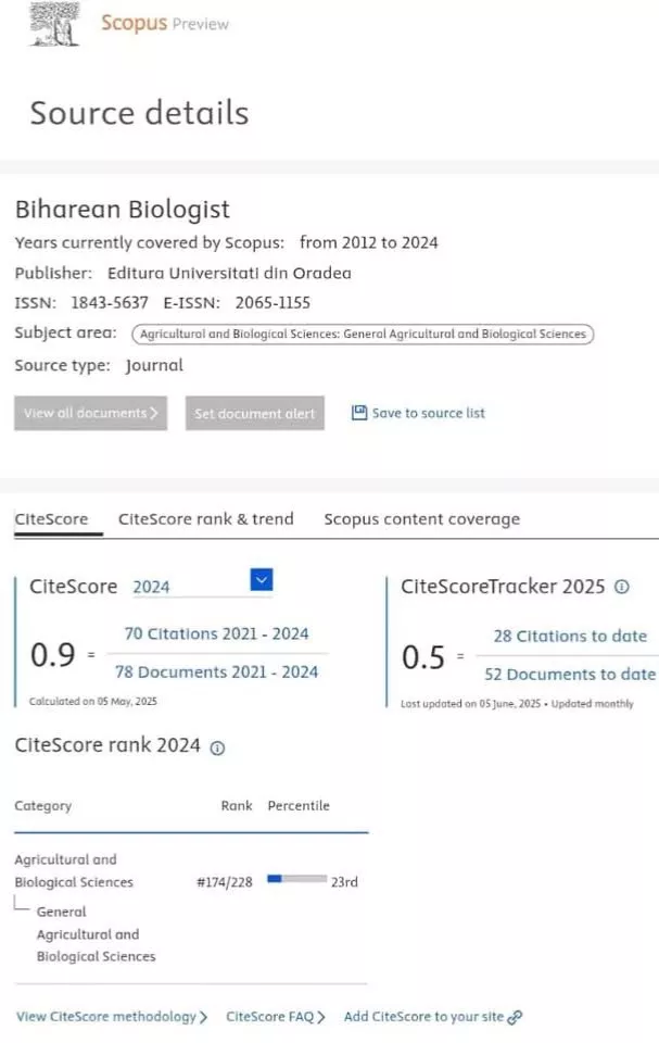 تم نشر البحث بالمجلة الرومانية Biharean Biologist التابعة لجامعة Oradea، المجلة مصنفة دوليا ضمن قواعد بيانات سكوبس Scopus Q4 بمعامل تأثير Impact Factor=53 و Citescore=0.9