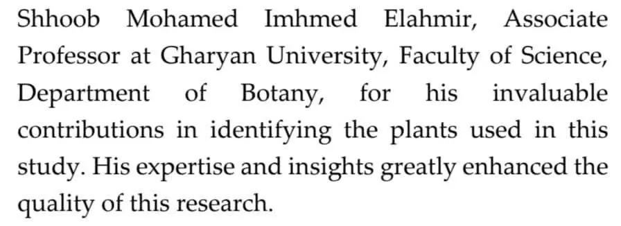 ساعد الدكتور شهوب الأحمر من قسم علم النبات في تصنيف النباتات ضمن هذا البحث.