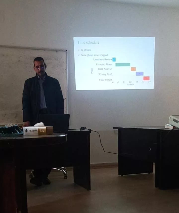 In a scientific achievement that adds to the accomplishments of the Faculty of Science - Gharyan, the PhD proposal submitted by faculty member Dr. Abdelnaser Al-Bashir Al-Saghir of the Department of Chemistry was accepted as part of his doctoral studies at the Faculty of Science, University of Misurata on Monday, 16 February 2026. The proposal was accepted with minor revisions following an outstanding academic presentation.